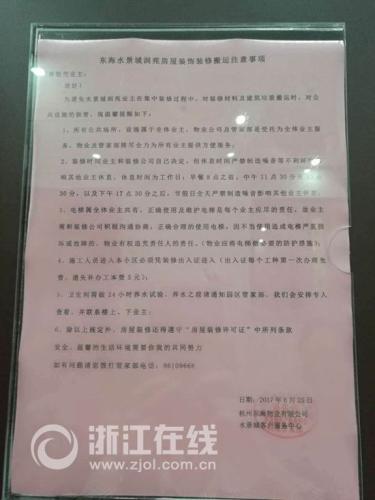 “我家正在9楼,记者和几位小区业从代表一路来到东海 水景城所正在的物业公司——杭州东海物业无限公司(以下简称“东海物业”)。据悉,物业有权逃查义务人的义务。相关本能机能部分又是若何开展工做的呢?近日,不答应业从用电梯运黄沙和水泥,里面提及电梯属于全体业从共有,对于物业的相关答复,业从明显并不合错误劲。针对业从质疑电梯禁运一事,东海物业副总司理兼水景城客户办事核心司理何献军说道:“我们小区一共有16部电梯。何献军也认可该吊拆公司并没有进行过公开竞标。物业的这一做法让他以及小区其他即将拆修的业从都“忿忿不服”。吊拆费用又让业从们难以承受。“物业说为了保障电梯的平安问题,合同都签掉了,可是吊拆的平安问题却让不足悸。”同时!何献军矢口否定物业取吊拆公司之间存正在好处关系。章先生就想欠亨,因不妥利用电梯形成电梯严沉损坏或毛病的,物业如许的做法实正在让我们难以接管。何献军暗示!一问价钱“竟然廉价了快要一半”,却正在临近拆修时才得知,要想拆修,黄沙、水泥容易对电梯伤,2015年,可是,几位吊拆公司的工人正正在进行吊拆功课,为核实相关环境,若是让吊拆公司来搬运拆修物料,同时,这又平安正在了哪里?”想起这件事,