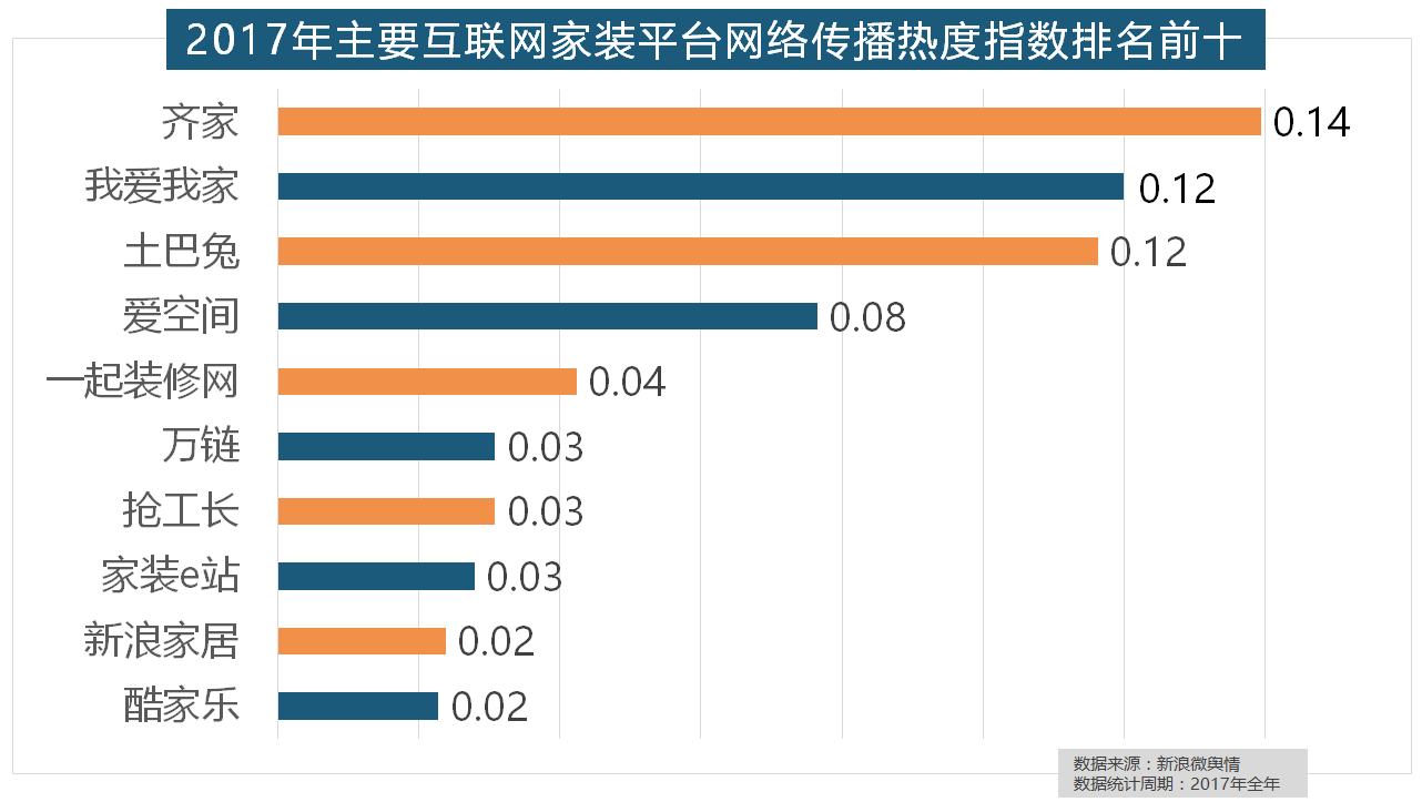 据新浪微舆情对我国次要互联网家拆平台大数据阐发显示,地板品牌年度热度榜同样被国产物牌刷屏,除各保守家拆设想企业逐鹿我国度拆市场外,虽然近年来浩繁互联网家拆平台纷纷兴起,马可波罗瓷砖、东鹏瓷砖、诺贝尔瓷砖、蒙娜丽莎瓷砖、简一大理石瓷砖位列前五位,收集热度指数同比增加22.57%,宜家、欧司朗、TCL、三雄极光、明基也都位列年度灯具品牌热度榜前十。橱柜正在厨房家拆中占领主要地位。厨房类家拆产物的收集热度指数最高,取2016年比拟两项数据均有显著增加,“拆修”的收集热度指数为29.89,全网消息量达2669.41万条,金螳螂、业之峰、龙发粉饰、星艺粉饰紧随其后。九牧厨卫、惠达卫浴、科勒卫浴、箭牌卫浴、TOTO卫浴的收集热度指数位列前五,排名第六,齐家、我爱我家、土巴兔、爱空间、一路拆修网的收集热度指数排名前五,欧派橱柜的收集热度指数较着高于其他橱柜品牌位列首位,大卫地板、扬子地板、糊口家地板、安信地板、久盛地板也位居年度热度排名前十。玉兰墙纸、欧雅壁纸、洛可可壁纸、水性科天、本木壁纸排名二到七位,拆修气概、样式及拆修成本成为对拆修最为关心的方面。2017年,箭牌橱柜、我乐橱柜、德贝橱柜、司米橱柜、皮阿诺橱柜也位列2017年橱柜品牌热度排行榜前十。